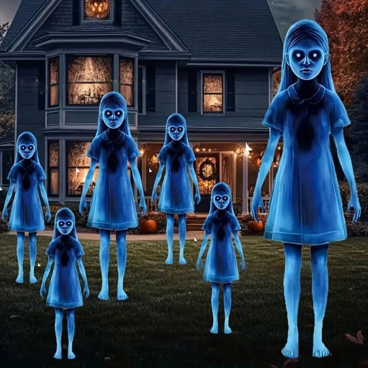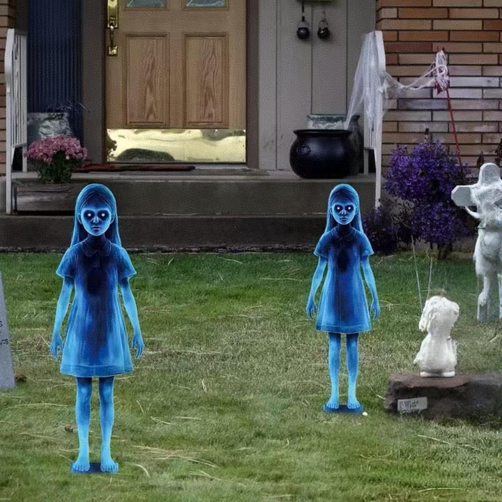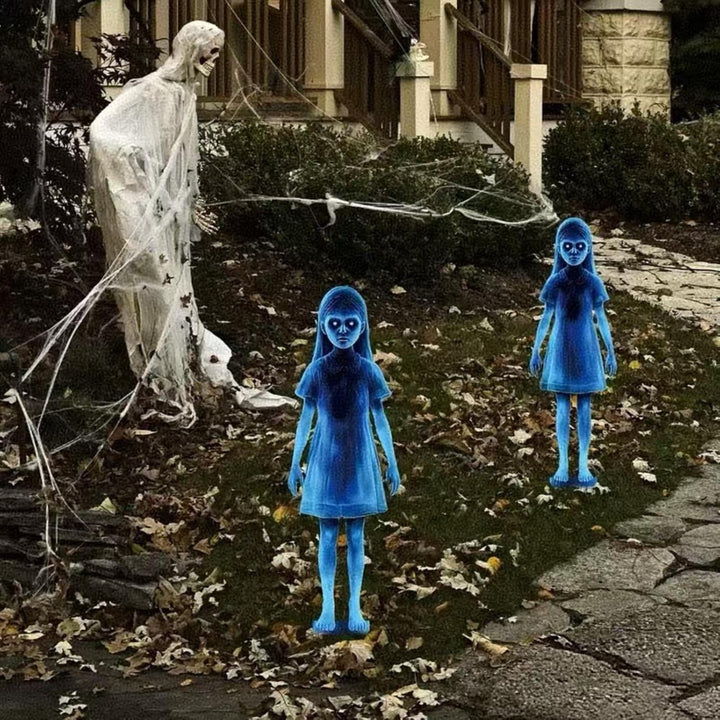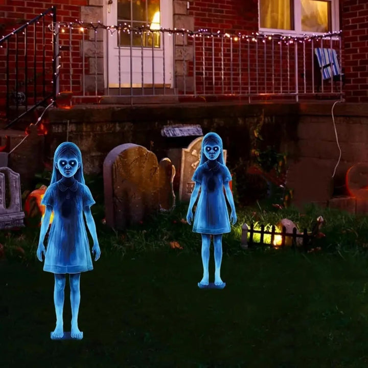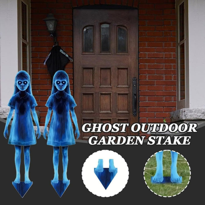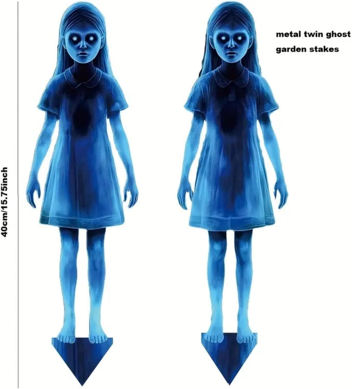 - ăSturdy Weather-Resistant Iron BuildăScary Twins Halloween Yard Signs Stakes Solves rust/corrosion issues! Crafted from premium iron, this Halloween ghost stake withstands wind/rain for indoor/outdoor use year-round. Durable (15.7x4.6x0.04in) to avoid easy damage, perfect for long-lasting spooky decor