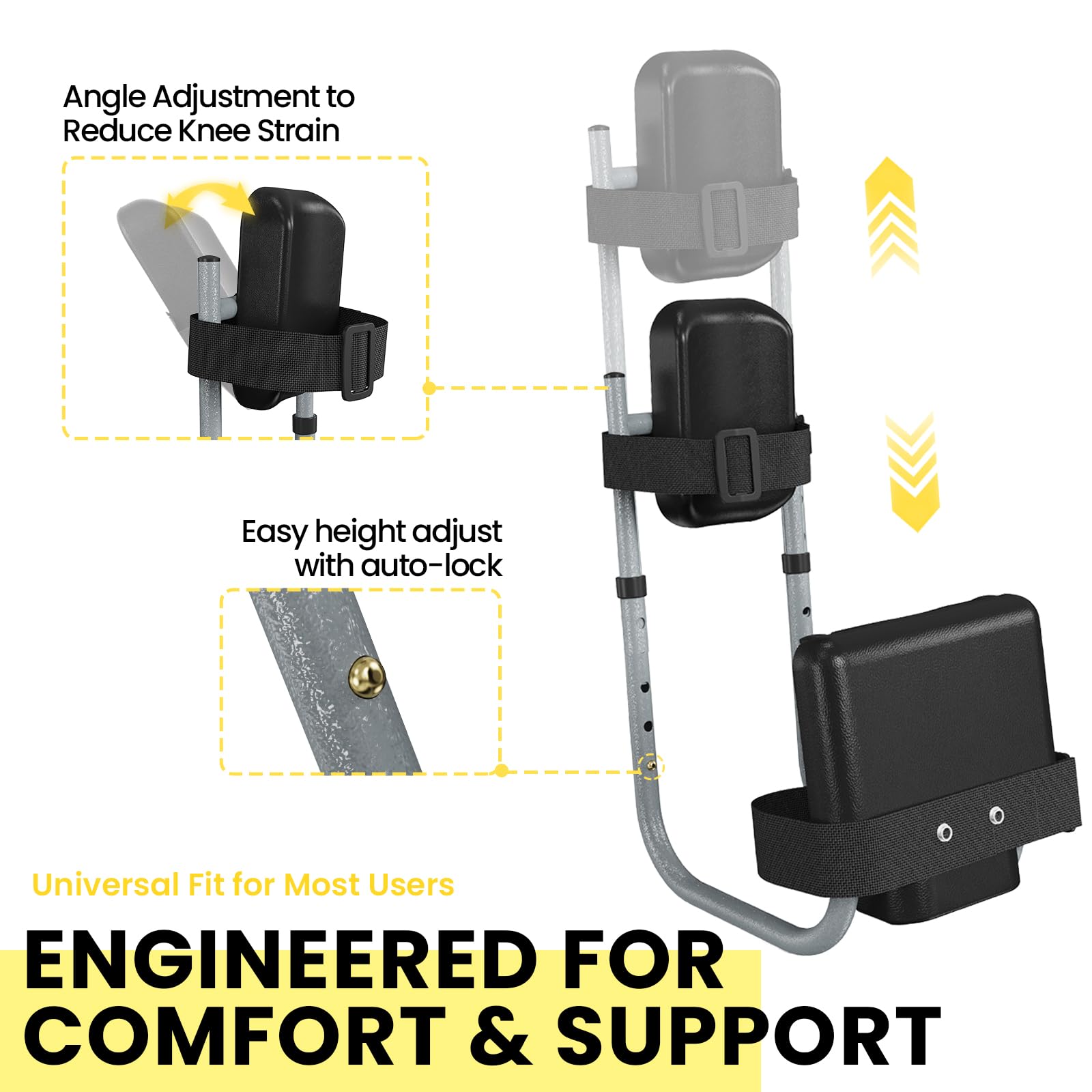 Engineered for a perfect fit, it features an easy-to-use auto-lock for height adjustment and an adjustable pad angle to reduce knee strain.