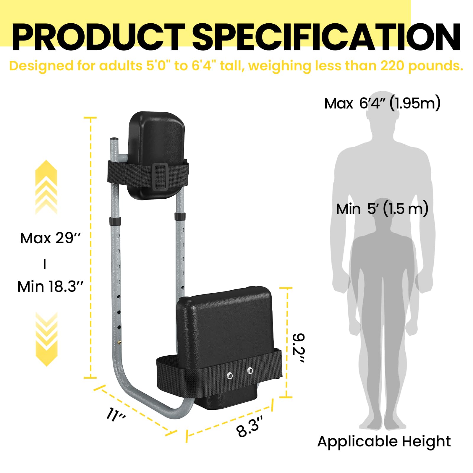 With a fully adjustable design, this knee seat comfortably fits most adults from 5'0" to 6'4". The secure straps and adaptable frame ensure a stable, universal fit, giving you reliable support tailored just for you.