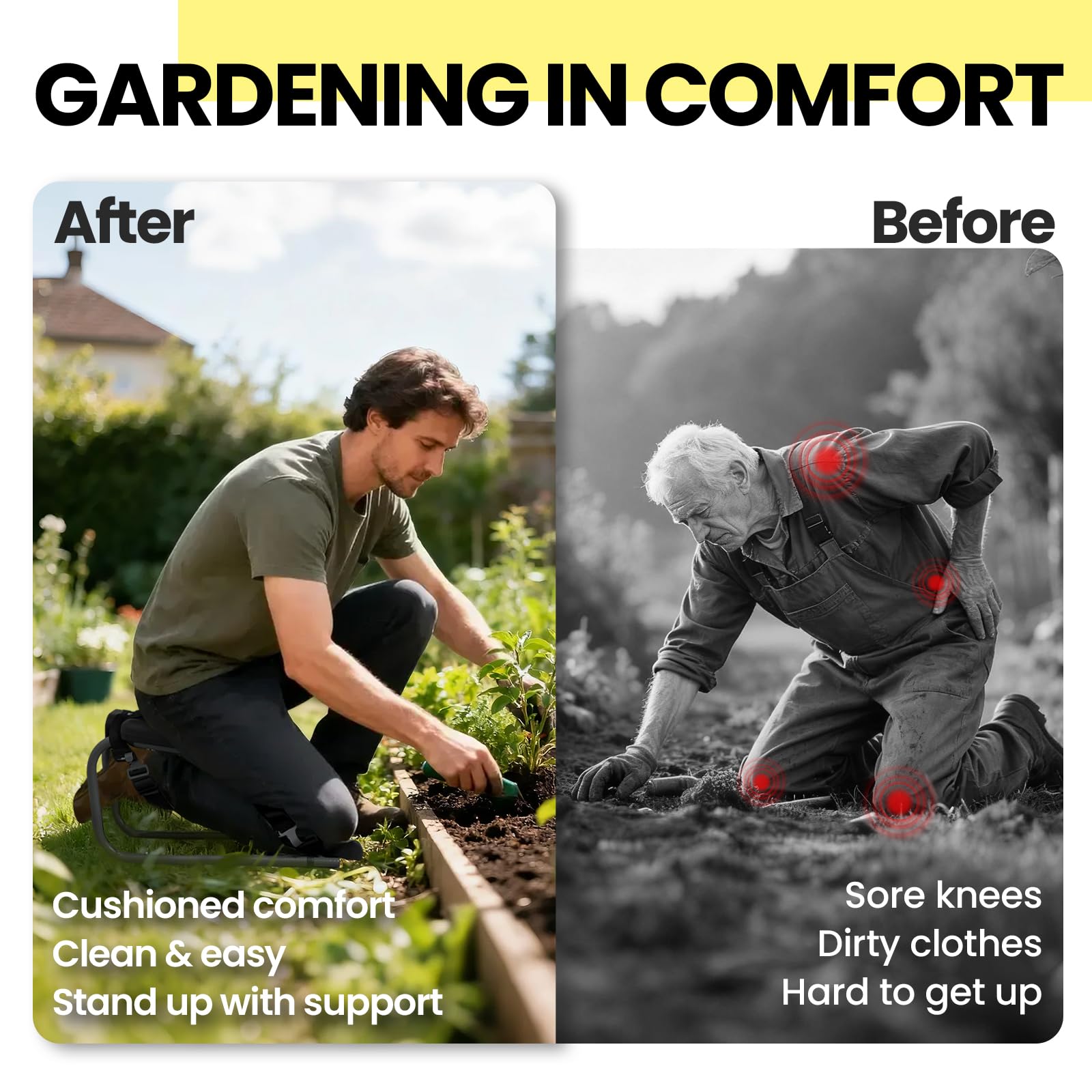 Say goodbye to sore knees and strained backs. Now you can immerse yourself in your favorite projects—from the garden to the garage—with comfortable, hands-free support that moves with you, making every task a pleasure, not a pain.